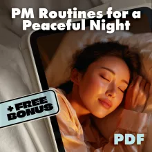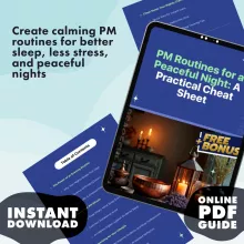 Don’t wait for sleepless nights to take a toll on your health and happiness. Download “PM Routines for a Peaceful Night: A Practical Cheat Sheet” today and start experiencing the benefits of better sleep, reduced stress, and more peaceful evenings. Your best night’s sleep starts here!