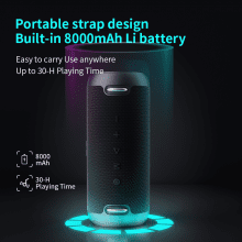 - Long Playtime: 8000mAh rechargeable battery offers over 30 hours of non-stop music.