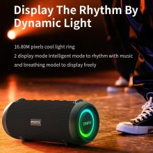 This speaker doesn’t just play music – it enhances every moment. Bluetooth 5.0 ensures instant pairing and stable connections with your phone, tablet, or computer. The built-in light ring display syncs to your music, creating an exciting atmosphere that matches the rhythm. With its rugged IPX8 waterproof rating, you can enjoy your favorite playlists worry-free in rain, snow, or near the pool.