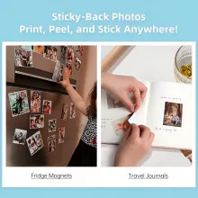 - Sticky-Backed Photo Paper: Prints vibrant 2×3 inch photos with adhesive backing for versatile use.