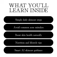 This isn’t just another collection of generic advice—it’s a comprehensive digital resource that combines expert knowledge, relatable stories, and modern technology to empower you on your skincare journey. Designed specifically with skincare tips for acne-prone skin, it bridges the gap between science, lifestyle, and self-care so you can finally build routines that work. Perfect for teens, adults, or anyone battling acne breakouts, this eBook provides clarity in a world of overwhelming skincare advice.