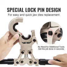Designed with a high-strength tool head, this crimper applies uniform pressure to each connection point, giving you accurate and dependable crimps with ease. A convenient lock-pin mechanism allows fast jaw changes, letting you switch between sizes in seconds. With its 360° rotatable head, you can work comfortably in tight or awkward spaces without extra tools—an essential advantage when handling complex pipe layouts.