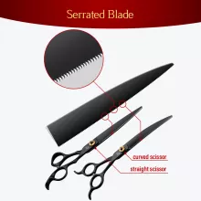 These scissors are built with quality and performance in mind. Their JP440C steel blades are sharpened for long-lasting edge retention, allowing for effortless, crisp cuts. Choose between straight cutting shears, curved shears for shaping, thinning shears for blending, or a stylish black sawtooth option for controlled cutting. They’re suitable for grooming dogs, cats, and other furry companions.