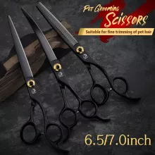 Give your pet a salon-quality grooming experience at home or in your grooming studio. These professional grooming scissors are crafted from high-grade JP440C stainless steel and designed to deliver clean, precise cuts every time. Available in 6.5-inch and 7-inch sizes, they offer excellent control and balance, making them ideal for shaping, trimming, and finishing your dog’s coat with ease.