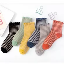 Elevate your sock game with these Pure Cotton Vintage Checkered Lace Mid-Calf Socks with Wooden Ear Cuffs. Combining both chic style and exceptional comfort, these socks are the perfect addition to your wardrobe. Featuring a delightful checkered pattern and delicate lace detailing, they add a touch of elegance to casual outfits while offering warmth and breathability. Designed for women who appreciate a blend of fashion and comfort, these socks are a must-have for all seasons.