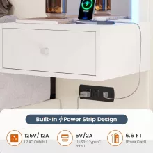 - Built-in charging station with 2 standard plug outlets, 1 USB port, and 1 type-C port for convenient device charging