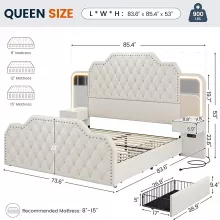 Indulge in luxury with our Queen and Full Size Platform Bed Frame featuring built-in storage drawers, a charging station, and LED headboards. Designed to elevate your bedroom experience, this bed frame combines functionality with exquisite craftsmanship for a truly captivating sleeping space.