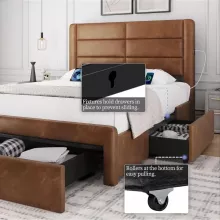 Transform your bedroom into a clutter-free, cozy retreat with this Queen Size Upholstered Bed Frame. Designed with the modern lifestyle in mind, this bed does more than just provide a place to sleep — it brings convenience, style, and smart storage solutions right into your room. With sleek faux leather upholstery and a padded headboard, it’s the perfect blend of function and fashion for any home.