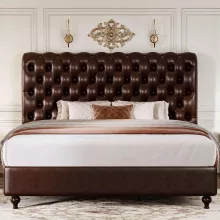 This bed frame isn’t just for sleeping; it’s designed to be the centerpiece of your room, ideal for daily relaxation, weekend movie marathons, and unwinding after long days. Its sleek brown PU leather finish complements a wide range of interiors — from minimal modern spaces to more classic setups.