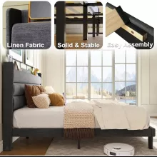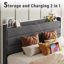 This queen size bed frame is not just a piece of furniture, but a multi-functional haven designed for the modern lifestyle. The built-in outlets in the headboard allow you to conveniently charge devices overnight, making it perfect for today’s tech-savvy individual. The additional storage space is ideal for keeping nighttime essentials at hand, reducing clutter and enhancing your peace of mind.