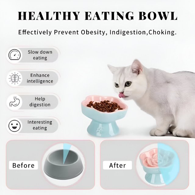 When it comes to your pet’s well-being, every little detail counts. The Raised Ceramic Slow Food Bowl is designed to create a healthier eating routine by preventing fast eating and offering a more ergonomic feeding position. This bowl helps reduce the risk of bloating and indigestion, both of which are common in pets that eat too quickly.