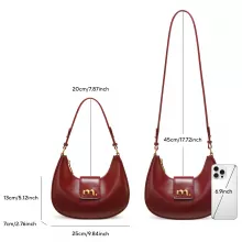This half moon-shaped underarm bag brings a modern twist to a timeless silhouette. Its soft red leather adds a bold yet classy pop of color, while the smooth lines and subtle decorative flap offer a minimalist, fashion-forward look. The compact size (9.84″ L x 2.76″ W x 5.12″ H) makes it easy to carry while providing just enough room for your daily must-haves—phone, wallet, keys, and makeup essentials. Whether you’re headed to class, the office, a coffee date, or a weekend outing, this bag is built to keep up with your style and pace.