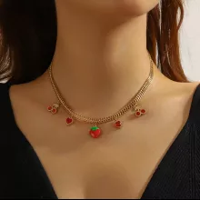 Turn heads and steal hearts with this stunning Red Rhinestone Cherry Heart Strawberry Pendant Necklace. Designed for women who adore bold, playful elegance, this statement piece combines charm, shine, and a touch of vintage-inspired magic. The vibrant red rhinestones sparkle beautifully in the light, perfectly shaped into a sweet cherry heart with a strawberry twist—making it the perfect accent for any outfit.
