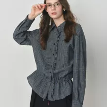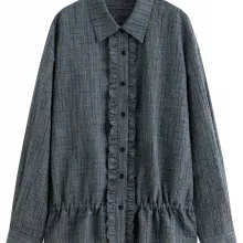 Crafted with a premium blend of 90.9% polyester, 5.7% rayon, and 3.4% other fibers, this shirt feels soft yet structured. The rich bubble-check texture creates a subtle visual interest, while the wood ear edge trim and full button front add chic, vintage-inspired character. Designed with a polo-style collar and regular long sleeves, it strikes the perfect balance between polished and relaxed.