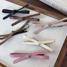 Perfect for everyday wear or special occasions, this leather bow barrette adds a sweet and stylish accent to any outfit. The coffee brown shade is versatile, making it easy to pair with everything from cozy sweaters to elegant dresses. The synthetic leather offers a smooth, polished look, while the sturdy alloy clip ensures a secure hold without tugging or damaging hair. Whether worn with loose waves, a chic ponytail, or a neat bun, this accessory complements a wide range of hairstyles and personal styles.