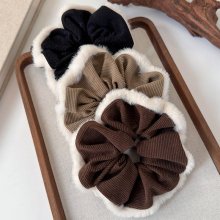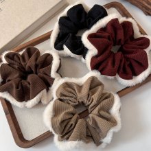 This accessory combines the nostalgic feel of retro corduroy with modern practicality. Its large, plush design not only keeps your hair secure but also serves as a stylish statement piece. The simple yet eye-catching geometric pattern ensures it complements almost any outfit. Whether you’re styling a messy bun for a relaxed afternoon or adding the finishing touch to your weekend look, this scrunchie and headband set elevates your hair game effortlessly.