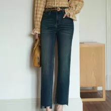 Step into vintage charm with a fresh twist. These ankle-length denim pants bring retro style into the now, with a unique asymmetric leg design and subtle moustache wash effect that makes every pair one of a kind. Designed with a flattering high waist and a slim, straight fit, these jeans combine casual ease with elevated detail. Perfect for autumn and cooler days, they deliver both comfort and fashion-forward flair.