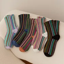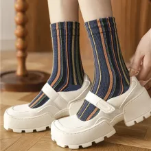Bring a pop of personality to your everyday look with these Retro Multicolor Striped Cotton Socks. Infused with the charm of vintage Japanese streetwear, these socks are the perfect mix of cozy comfort and standout design. With their bold stripes and retro vibe, they make a fun and fashionable statement whether you’re lounging at home or hitting the streets.
