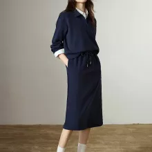 Meet the winter outfit that does it all. This women’s hoodie and midi skirt two-piece set blends modern comfort with a soft retro vibe, giving you a put-together look without the effort. The rich navy blue color adds a timeless touch, while the fleece-lined interior keeps you warm and comfortable when temperatures drop.