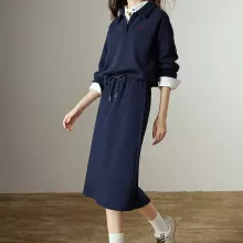 Designed with a relaxed fit, the pullover hoodie features a stylish polo-neck collar and delicate embroidery for a subtle premium finish. The matching midi skirt falls around mid-calf, making it flattering, cozy, and easy to style with boots or sneakers. Whether you’re going for a casual walk, meeting friends, or working from a cozy café, this set keeps you warm while looking effortlessly chic.