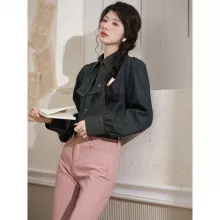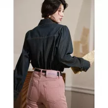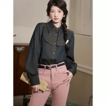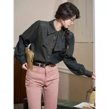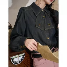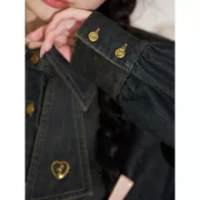 Made from a soft cotton blend, this denim shirt offers comfort without sacrificing style. The retro polo neck adds a classic touch, while the heart-shaped buttons give it a playful, feminine twist. With its loose, relaxed fit, this shirt is perfect for all-day wear. The durable fabric and high-quality construction ensure it will be a long-lasting favorite in your wardrobe.