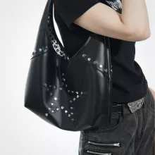 This croissant bag isn’t just a trend—it’s a style statement with attitude. With its bold rivet accents, glossy finish, and comfortable design, it brings runway-level edge to everyday outfits. The shape is modern yet wearable, while the size makes it practical for your day-to-day needs. Whether you’re dressing up or keeping it casual, this bag lets your personality shine through.