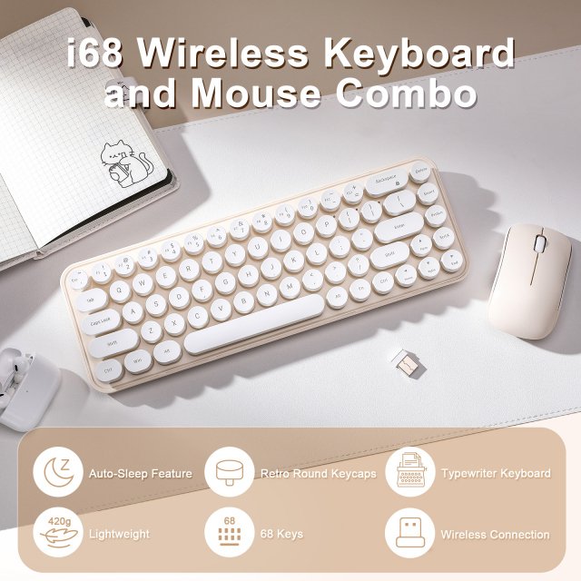 Add a touch of retro flair, effortless functionality, and comfort to your daily routine. Upgrade your typing and navigation experience with this wireless keyboard and mouse combo and transform your desk into a stylish, efficient workspace. Experience smooth typing, ergonomic design, and vibrant style all in one compact package.