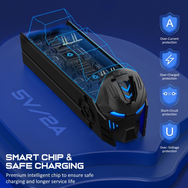 This charging station is built with gamers in mind. From its stylish RGB lights to its efficient dual fast-charge technology, every detail enhances your gaming lifestyle. Here are the standout features: