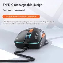 - Stylish RGB Lighting: Featuring vibrant RGB lights, this mouse not only enhances your workspace’s ambiance but also provides visual feedback during use.