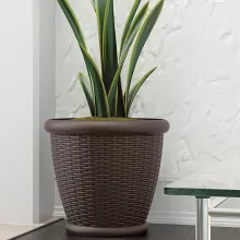 Bring charm and practicality to your favorite green spaces with this set of 3 round plastic wicker-style planter pots. Featuring a beautifully textured woven finish, these planters blend effortlessly into any indoor or outdoor décor. Whether you’re adding color to your front porch or sprucing up a sunny kitchen window, these stylish pots are the perfect home for your favorite flowers, herbs, or small shrubs. Their classic wicker-inspired design offers a touch of rustic elegance while providing modern, plant-friendly features.