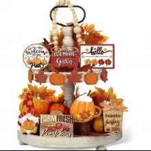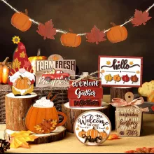 - Complete 8-Piece Set: Includes mini wooden signs, pumpkins, leaf garland, and autumn accents — all perfectly sized for tiered trays or tabletops.