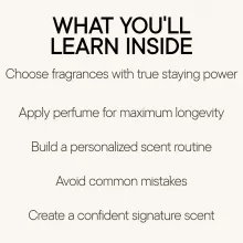 This guide is perfect for fragrance lovers, beginners, professionals, or anyone tired of reapplying perfume all day. What makes it different is its blend of education, real-world examples, and practical sections that turn knowledge into habit. You’re not just learning about perfume—you’re building a system that works for you.