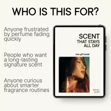 If you’ve ever applied perfume in the morning only to find it gone by lunchtime, this guide was made for you. Scent That Stays All Day is a practical, easy-to-follow digital guide designed to help you understand fragrance longevity and finally achieve a scent that truly lasts. Instead of vague tips, you’ll get clear explanations, real examples, and actionable routines you can start using immediately.