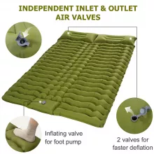 The Self-Inflating Double Sleeping Pad stands out with its built-in inflator pump, making setup a breeze while eliminating the need to carry additional equipment. The double-layer valves prevent air leakage, ensuring the mattress stays inflated throughout the night. The wave-shaped air cells distribute weight evenly, reducing pressure points and increasing comfort—a feature often missing in traditional flat sleeping mats. This pad brings the comfort of a regular bed to the rugged outdoors.