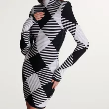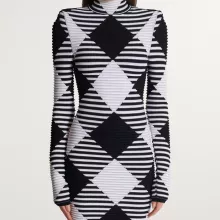 Crafted from a premium blend of high-stretch polyester and nylon knit fabric, this mini dress embraces your natural silhouette with a sleek sheath profile and a figure-sculpting fit. The long sleeves and turtleneck neckline offer a touch of elegance, while the bold leopard pattern in black and white adds just the right amount of wild sophistication. Its above-the-knee cut balances sexy and classy, making it the perfect pick for every season—especially when you want to heat up the night.