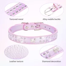 Shiny Rhinestone PU Dog Collar for Small to Medium Breeds