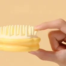 What makes this brush special is its thoughtful design. The soft silicone teeth protect your scalp while giving a refreshing massage. The suspended hanging design keeps the brush dry between uses, preventing bacterial buildup and saving storage space. Compact and easy to hold at just 2.95 × 2.95 inches, it fits comfortably in your palm for effortless daily use.