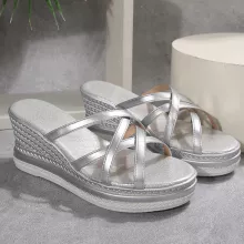 Shine bright and stride confidently with these Silver Cross Strap Wedge Sandals, designed to bring a perfect blend of fashion, height, and comfort to your warm-weather wardrobe. Whether you’re heading to a beachside brunch or strolling the city streets, these chunky platform slides will elevate every outfit—literally and stylishly. The gleaming silver finish and breathable mesh upper make them the perfect go-to footwear for sunny days, offering airy comfort with every step.