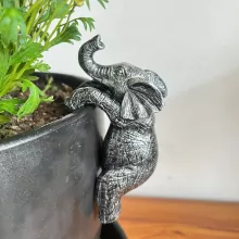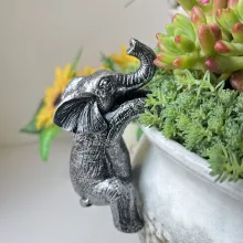 Add a touch of whimsy and elegance to your garden or indoor space with this beautifully crafted Silver Resin Elephant Hanging Flower Pot Holder. Designed as a small statue and functional flower pot hanger, this piece brings both charm and practicality to your home decor. Made from durable resin, it features a detailed silver elephant design that serves as a delightful focal point for any flower arrangement.