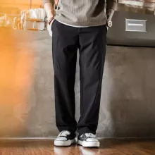 What truly sets these pants apart is the balance between structure and flexibility. The lightweight fabric weighs about 3.5 oz per square yard, making them breathable and perfect for spring and summer wear. The added stretch allows for smooth movement when sitting, walking, or commuting. A premium YKK zipper ensures durability and a smooth closure, while the hidden back zipper pocket offers a discreet place to store small essentials like cards or keys without ruining the clean look. The mid-rise waist and loose straight fit flatter different body types, giving a relaxed but refined silhouette. These are not just ordinary office pants – they are built for modern men who want style, comfort, and function all in one.