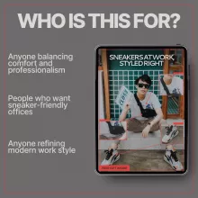 Sneakers at Work, Styled Right is a practical, modern guide designed to help you confidently wear sneakers in professional settings without sacrificing polish or credibility. If you’ve ever wondered how to make sneakers look intentional at the office, this guide gives you clear structure, real-world examples, and repeatable systems to make it effortless. Built for today’s flexible workplaces, it shows exactly how to style sneakers for work outfits in a way that feels elevated, comfortable, and aligned with your career goals.