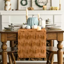 Whether you’re hosting a festive dinner, enjoying a cozy meal with family, or decorating for a fall-themed event, this table runner brings warmth and joy to your space. Its soft texture and elegant design make it ideal for both casual gatherings and formal occasions. Pair it with matching tableware and candles for a complete autumn-inspired tablescape that leaves a lasting impression.