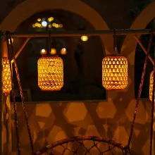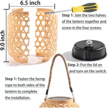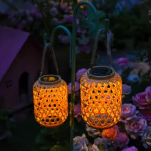 Measuring 8.7 x 6.3 inches and crafted from durable ABS plastic and hemp rope, this lantern is built to withstand outdoor elements. Its IP44 waterproof rating ensures reliable performance in various weather conditions. Powered by a high-efficiency polysilicon solar panel, the lantern charges throughout the day and automatically lights up at dusk—no wires or outlets needed.