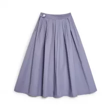 The soft fabric and natural waistline ensure a comfortable fit, while the zip-up closure and button detail add function and flair. Its mid-calf length creates a graceful line that suits a wide range of body types, while the pleats lend a gentle flow to every step you take. Pair it with a tucked-in tee or a cozy sweater – this skirt adapts to your personal style effortlessly.