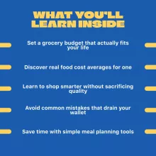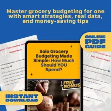 Download Solo Grocery Budgeting Made Simple: How Much Should YOU Spend today and start building a grocery budget that works for YOU—smart, realistic, and stress-free. Your wallet and your dinner plate will thank you.