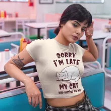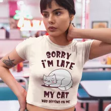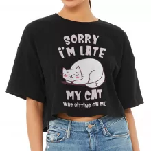 Sorry I’m Late My Cat Was Sitting On Me Cropped T-Shirt