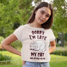 Sorry I’m Late My Cat Was Sitting On Me Cropped T-Shirt – Funny Graphic Trendy Tee – Cool Cat Women’s Basic T-Shirt