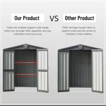 Constructed from high-quality galvanized metal, this storage shed stands strong against rust and corrosion, ensuring longevity without the need for frequent maintenance. The advanced gable sloping roof design prevents water accumulation, protecting your stored items during heavy rainfalls. Moreover, the robust spire structure with supporting beams adds an extra layer of durability and stability.