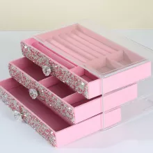 Unlike ordinary storage boxes, this jewelry case stands out with its sparkling rhinestone exterior and plush velvet interior. The thoughtful three-layer layout ensures your pieces are never cluttered, tangled, or misplaced. Each section is designed to help you store everything in its place—and look great doing it. It’s the kind of item that turns heads and makes getting ready feel just a little more luxurious.