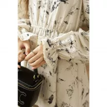 Not only is this dress designed to be visually stunning and comfortable, but it also boasts a fabric blend that offers slight stretch for ease of movement. The combination of polyester and polyamide ensures durability and a soft feel, making it suitable for all-day wear. Its unique ink painting floral pattern and flared sleeves add a distinctive touch of character that is both memorable and stylish.